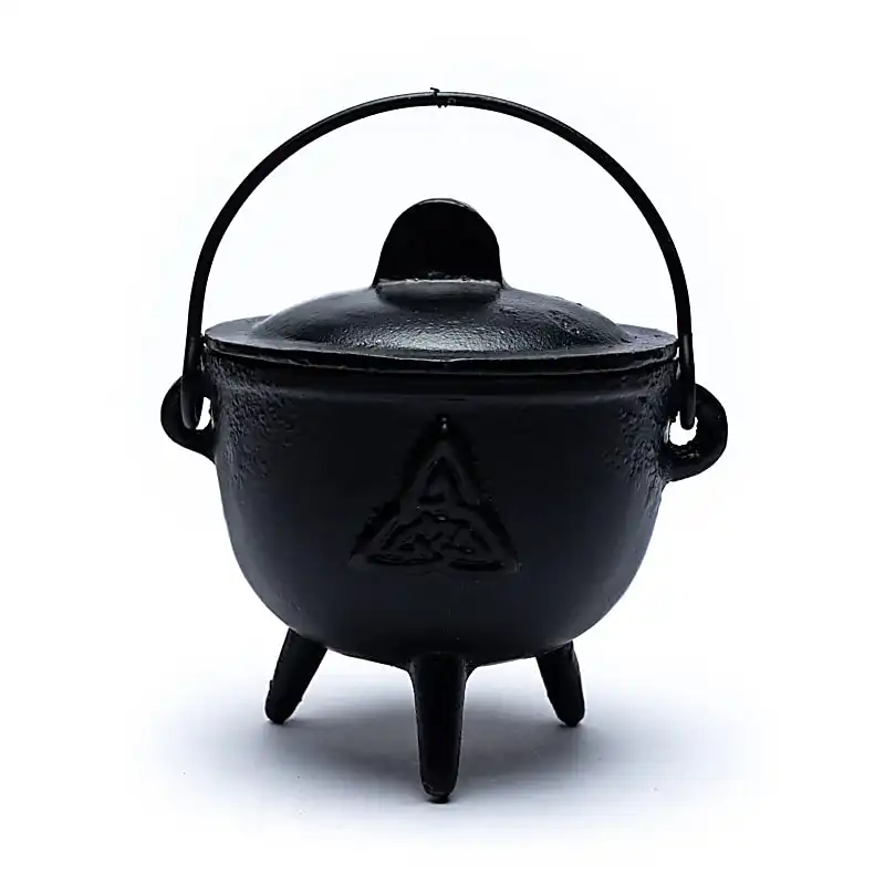 - Mystical eye-catcher: Solid black cast iron kettle with raised triquetra symbol for protection and eternity.