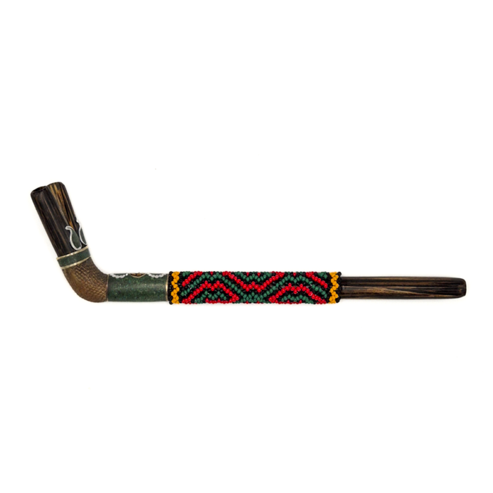 The applicator is finished with a beaded wrap in red, green & yellow . The geometric patterns are visually based on design forms of the