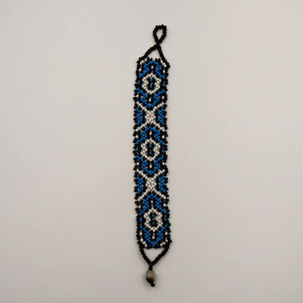 - Handmade Shipibo bracelet with artistic patterns from the Amazon.