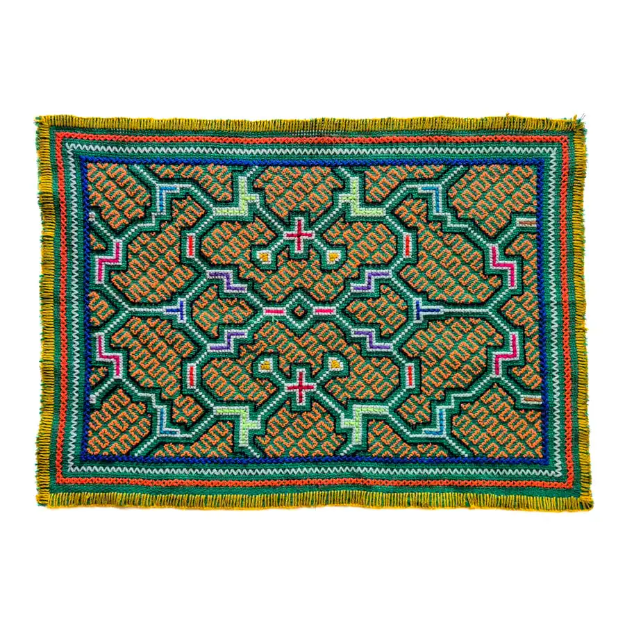 - Hand-embroidered Shipibo-Kené shawl from Peru