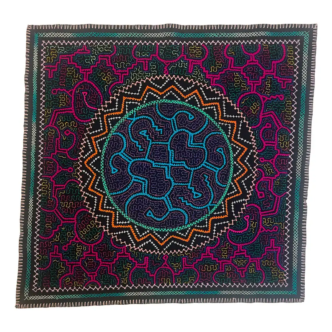 This handmade Kené shawl was made by a Shipibo-Conibo family friend in Pucallpa, Peru.
