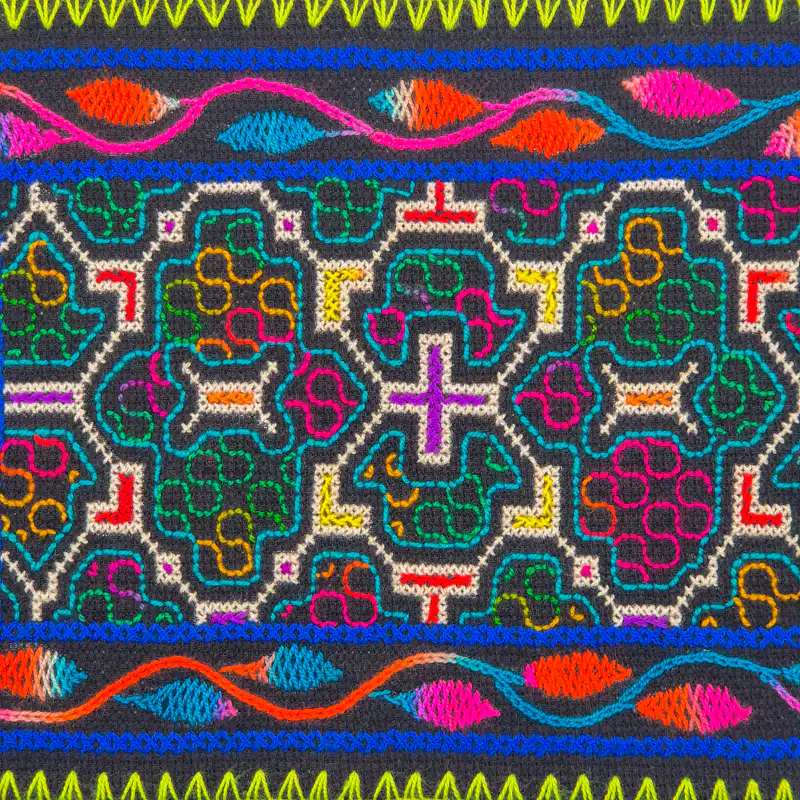 Hand Embroidered Shipibo Manta with Ponte Kené Pattern