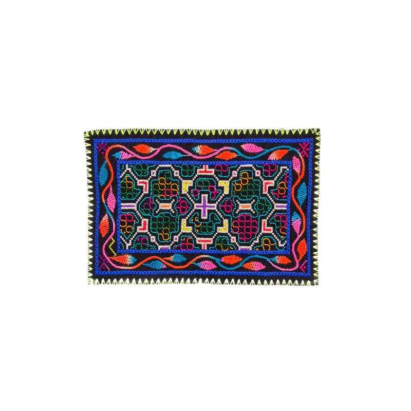 Hand-embroidered in Pucallpa, unique piece from the Peruvian rainforest