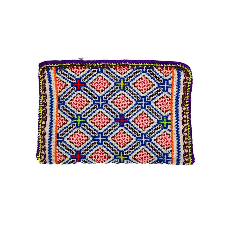 - Handcrafted pouch in Shipibo style with diamond pattern