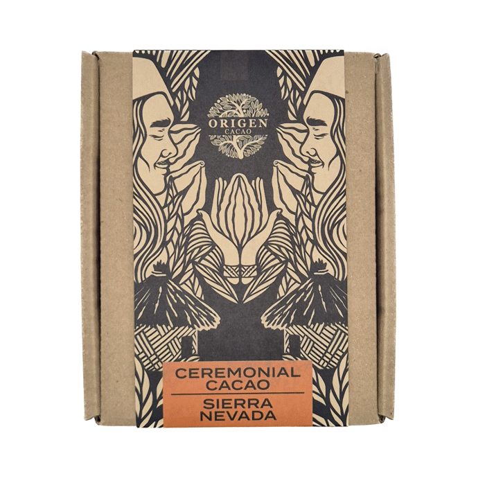 100% reiner zeremonieller Kakao – ethisch bezogen aus der indigenen Arhuaco-Community der Sierra Nevada Berge (Kolumbien).