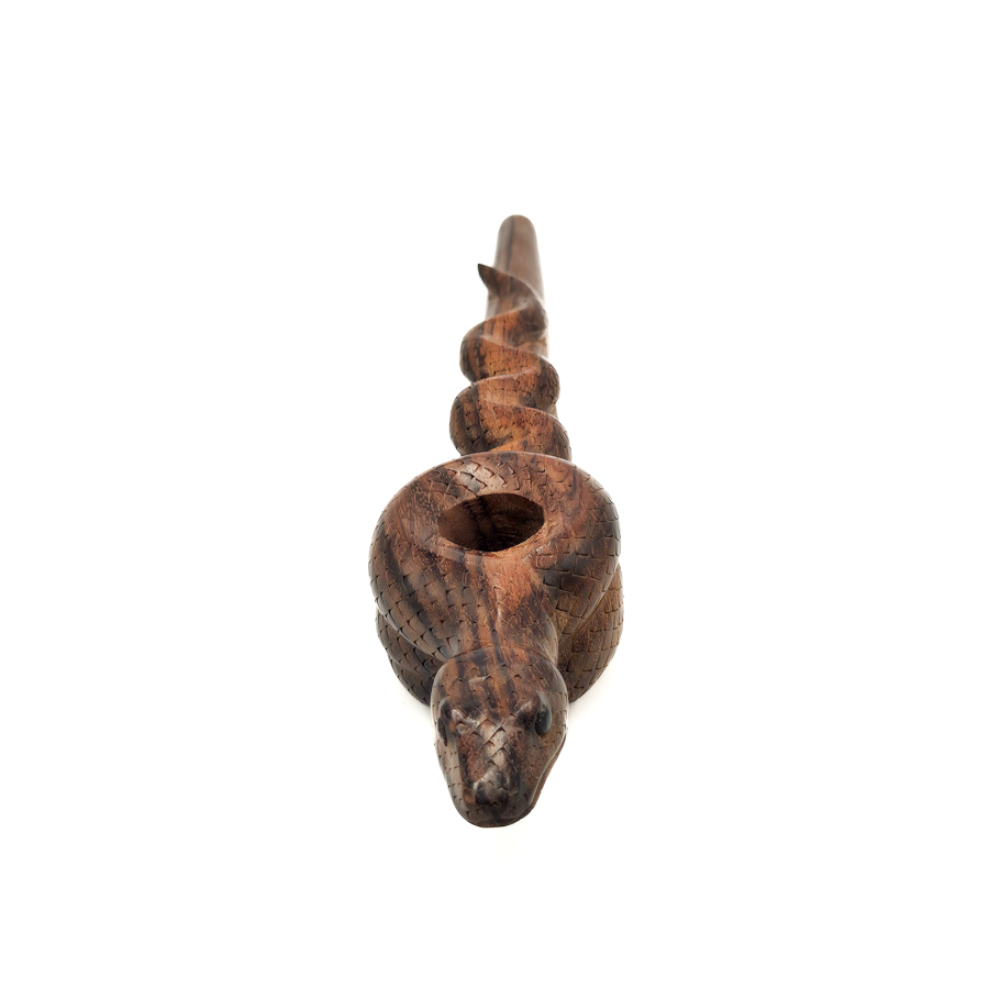 - Handgeschnitzte Mapacho Pfeife aus Holz in detailreicher Schlangenform